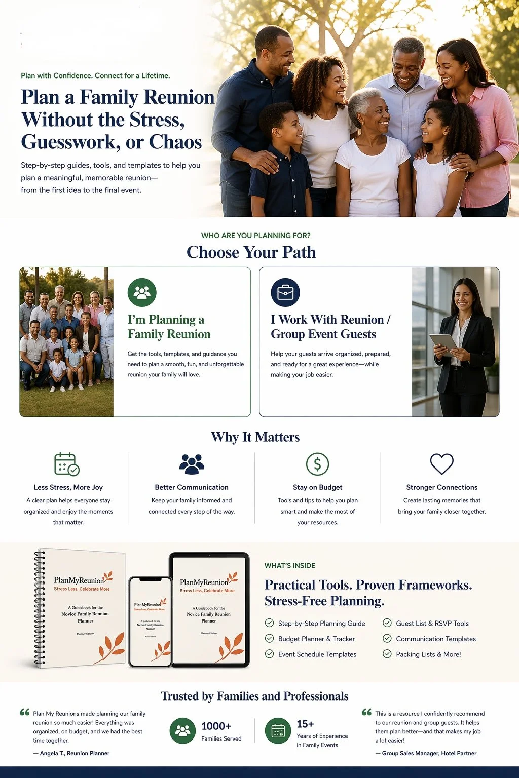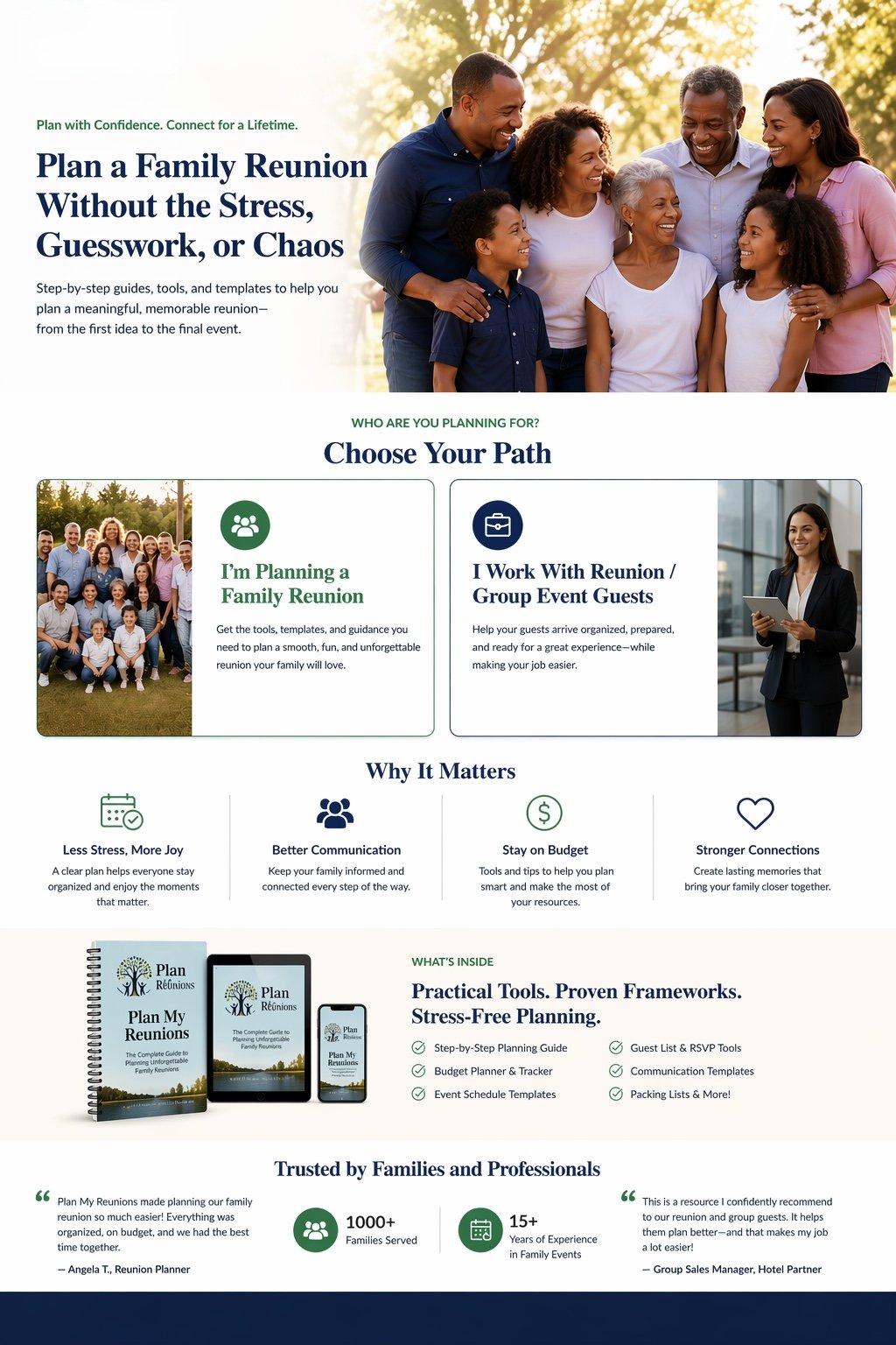 If you’re looking for quick access to get started building a budget, creating a schedule or deciding on the type of family reunion event you want check our custom planning tools.